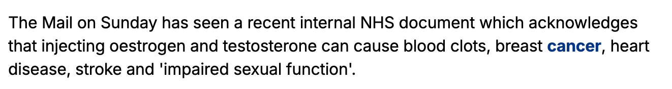 but it was also covered by the Daily Record and ultimately the Times. This is at exactly the time the proponents of the puberty blocker trial are saying (actually did say in court on Friday) that the Pathways trial is needed to stop kids harming themselves through DIY dosing. Notably the lawyer for Pathways did not make clear that anyone currently self-medicating would have been excluded from recruitment.