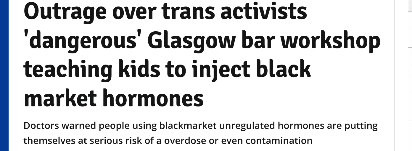 Several outlets ran with stories about children acquiring and dosing themselves with unregulated puberty blockers and opposite sex hormones. Here’s the Scottish Express